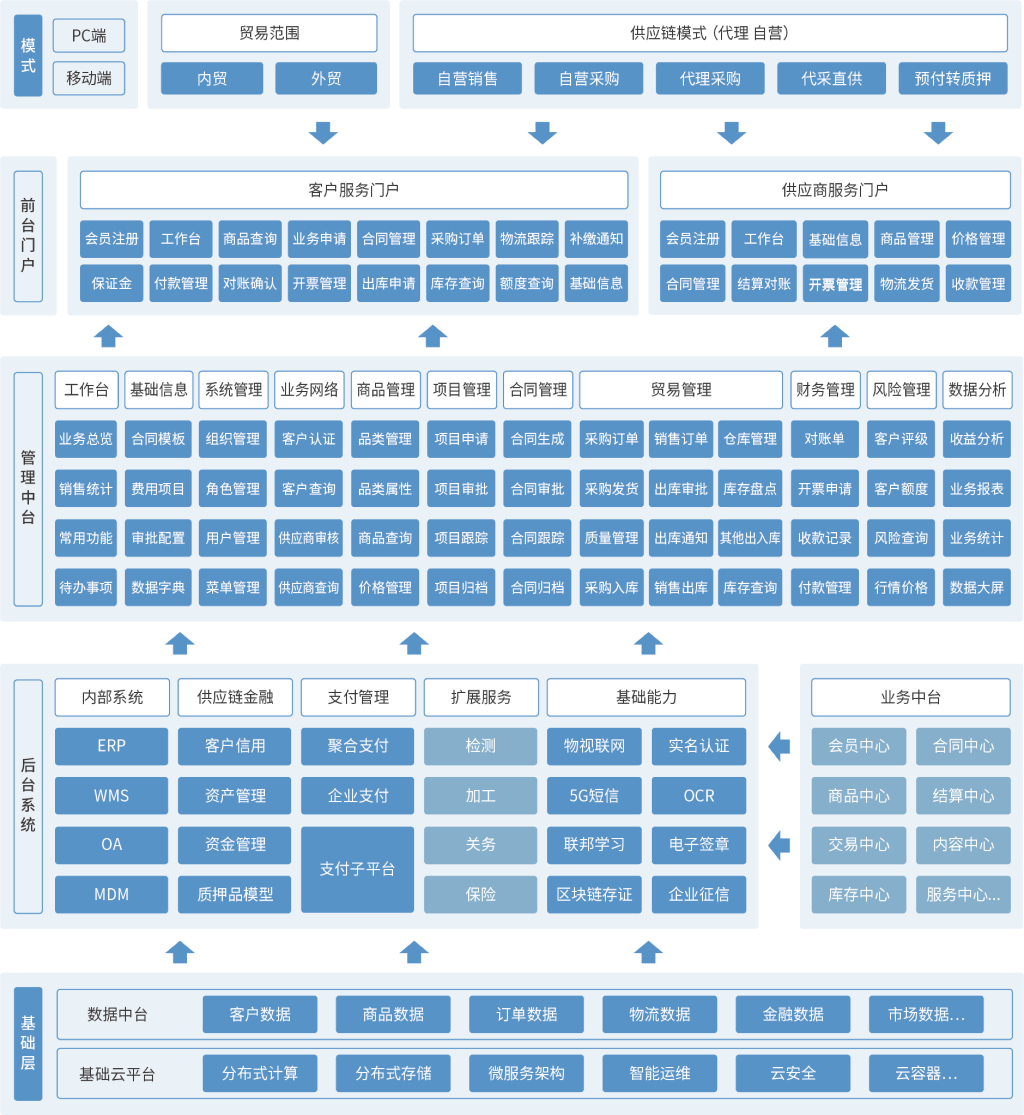 大宗交易模式复杂,需支持自营业务、代理业务、进出口业务,同时包括现货及期货业务模式。