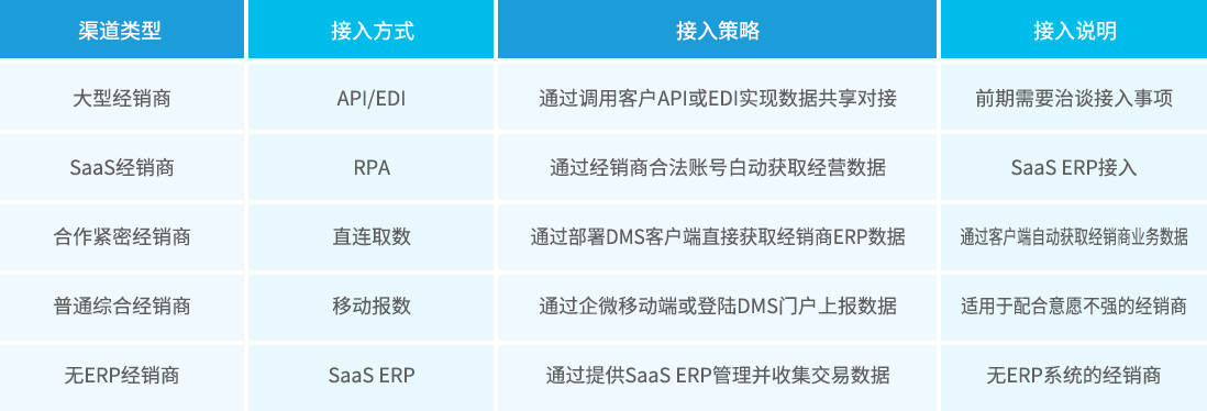 直连取数通过部署经销商数据采集加速器的绿色安全可靠的小软件,不仅可以帮助品牌制造商每日定点自动采集经销商业务系统完整的最细颗粒度的业务经营数据,并且还可以根据品牌厂商的渠道管理需要随时手动抽取指定经销商的业务经营数据;直连取数对经销商是无感的,文沥渠道数字化产品的ERP适配器已经覆盖市面99%以上的经销商系统,具备低成本高效的快速对接能力,数以万计的经销商直连取数经验能够确保采数的准确性和完整性。