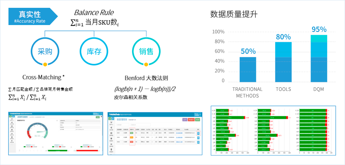 数据质量管理是文沥渠道数字化产品的数据自动化治理和数字化评价核心,通过数据质量管理可以实现经销商数据的日常运营监控、自动化治理和数字结构化的质量评价;其中经销商业务数据自动化的治理包括数据差异化的处理、主数据(如门店、产品及单据类型等)的智能化匹配和一体化业务指标的输出,数字结构化的数据质量评价包括可量化的质量总体评分和各项结构化的质量指标评分体系。通过数据质量管理可以将品牌制造商运营部门从以前传统繁重的经销商数据整理、加工和统计分析的工作中有效释放出来,投入到更有利于生意拓展的重要活动当中去。