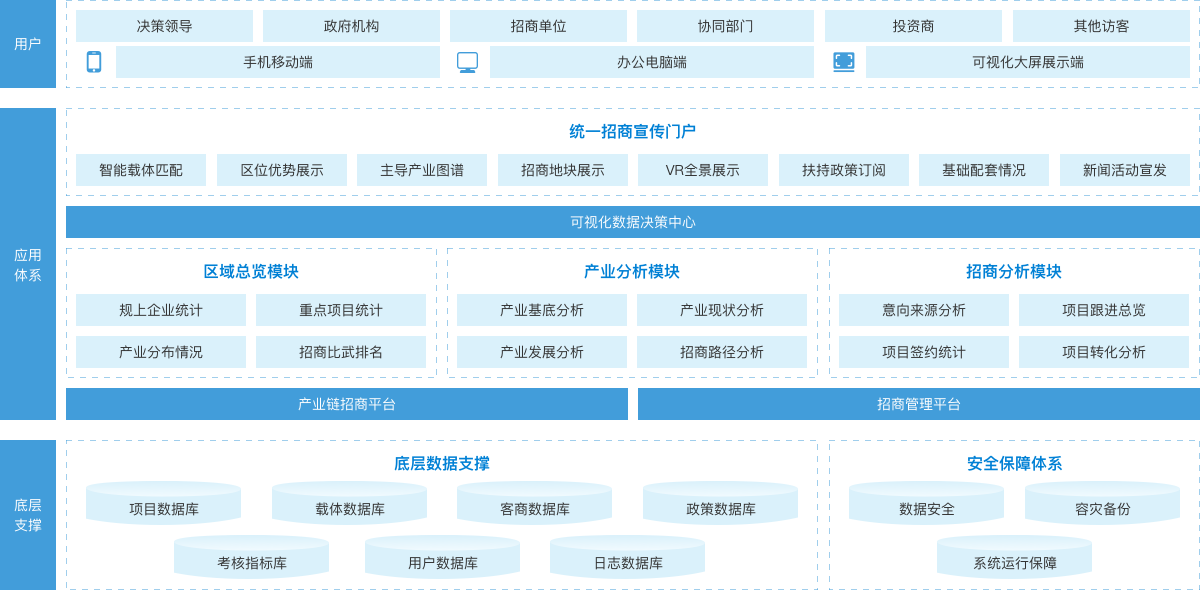 企业库、在谈项目库、签约库、在建项目库、项目载体库、招商资源中心。