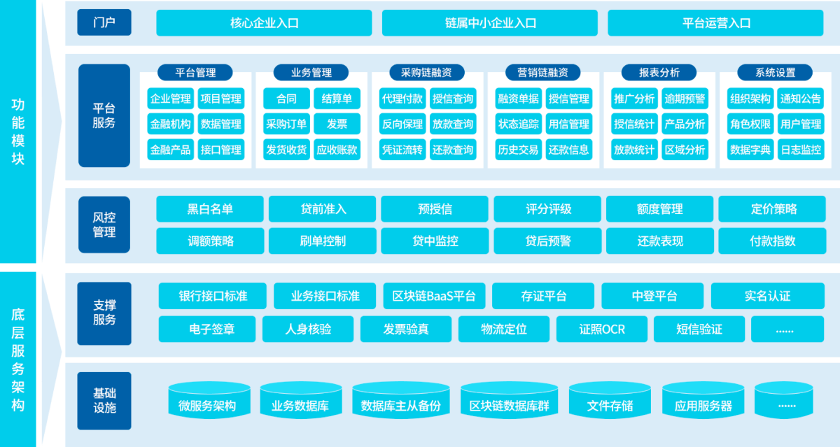 支持适配多种不同产业场景,引导多核心企业及产业生态纳入统一化平台管理,支持产业链多端金融业务开展,支撑多样性业务开展。